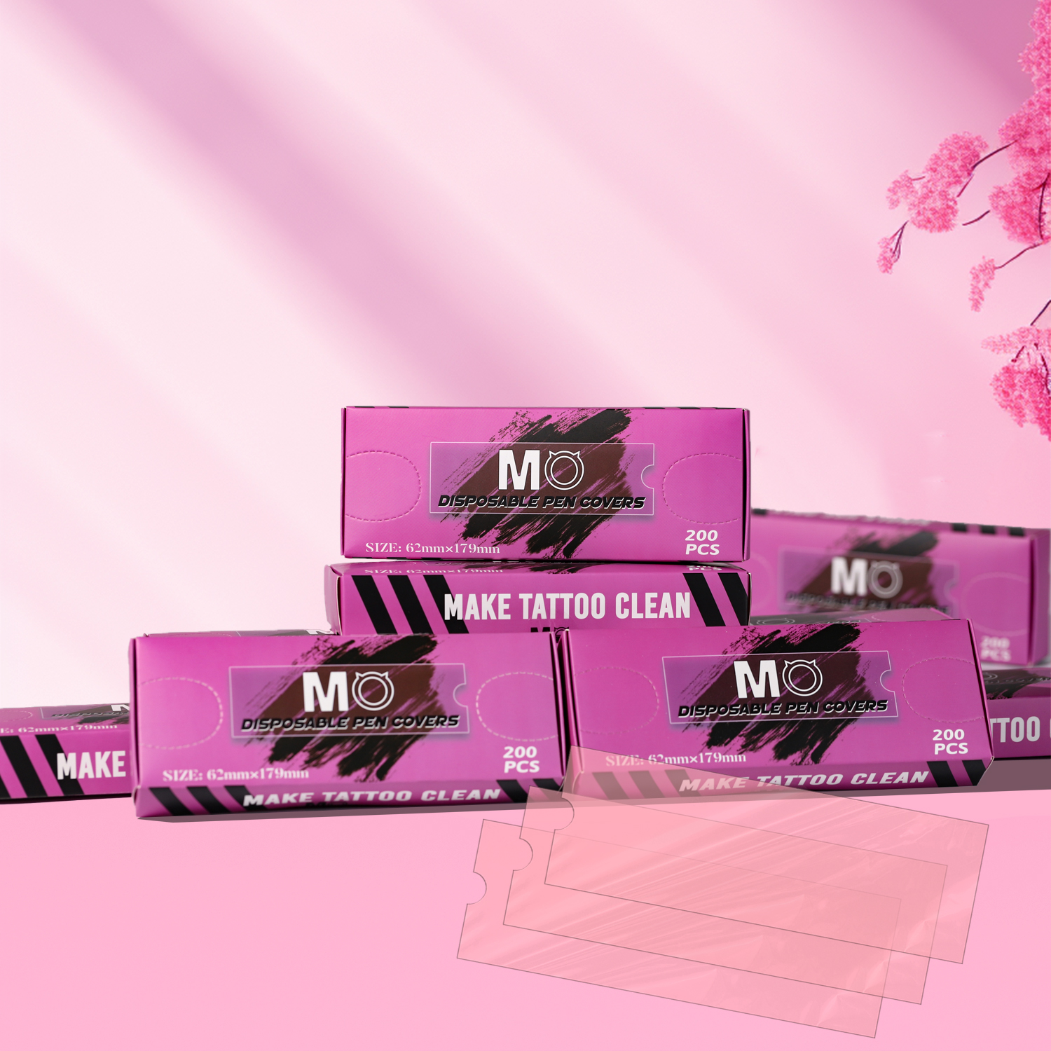 200pcs/box 62MM*179MM Big Size Pen Cover MO Pink Tattoo Pen Machine Sleeves Tattoo Accessories