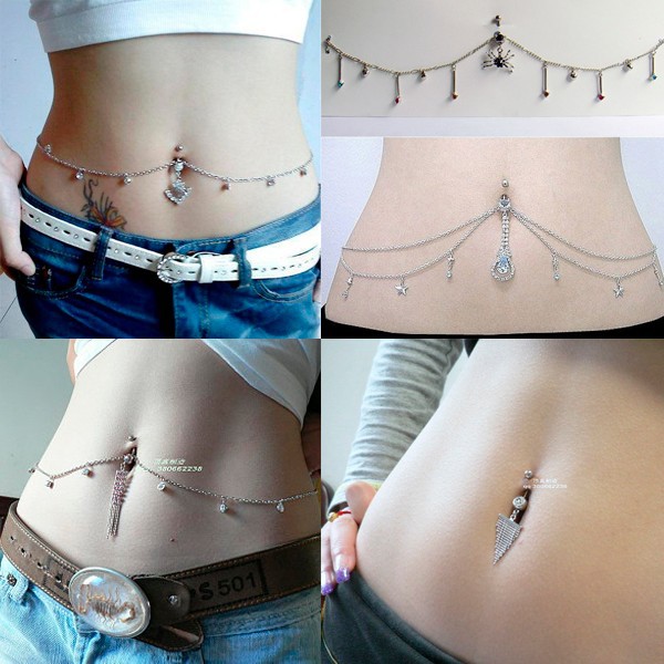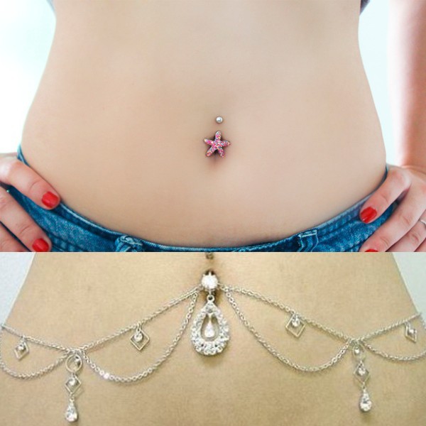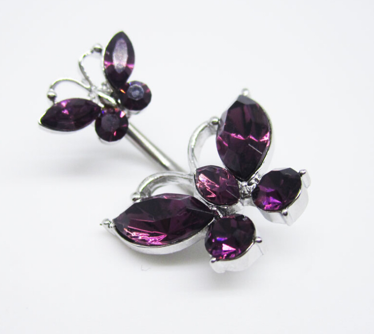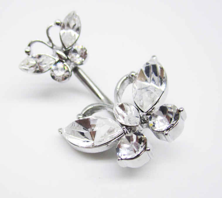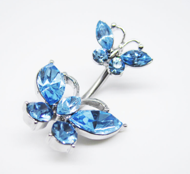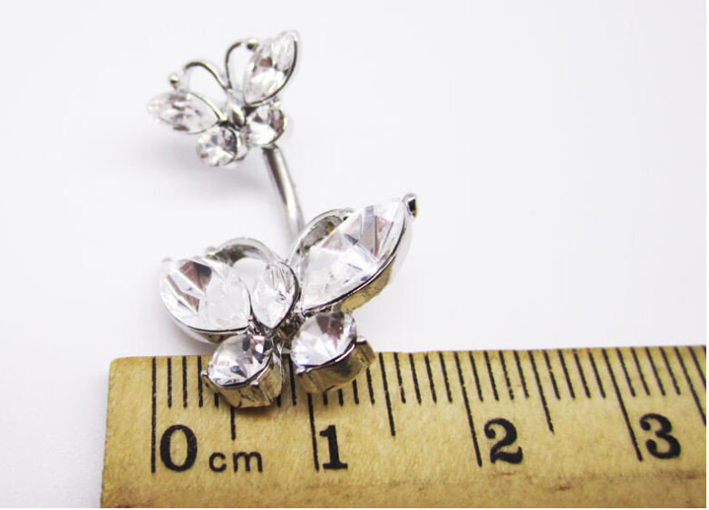 Double butterfly belly dance navel ring Belly Ring Dangle