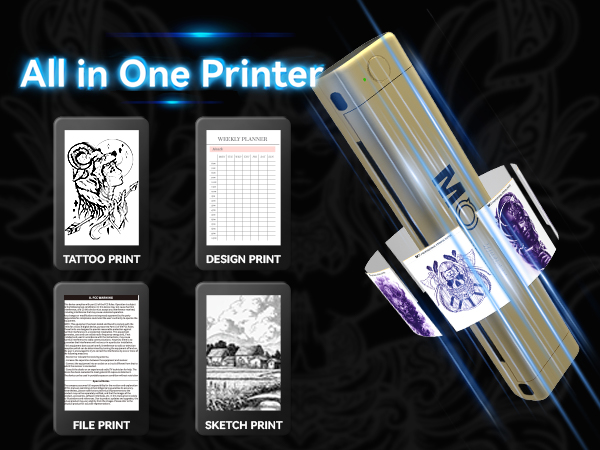 Designed with portability in mind, the MO Wireless Tattoo Stencil Printer is lightweight and compact, making it the ideal portable thermal printerfor artists on the go. Whether you're working in a studio or traveling to conventions, this printer fits seamlessly into your setup without taking up valuable space. Its user-friendly design ensures that even beginners can operate it with ease, making it a versatile addition to any artist's toolkit.